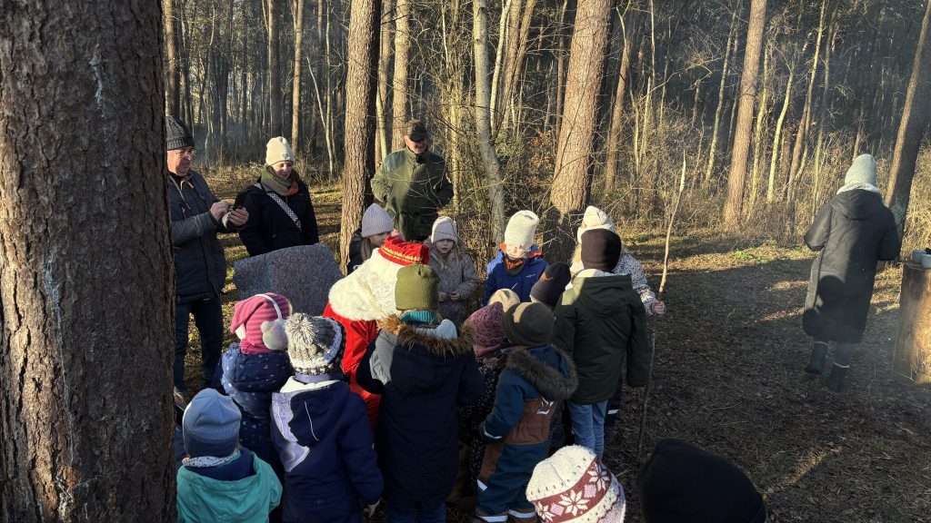Jahren mit Kindern ihren Eltern und Großeltern in den Wald.